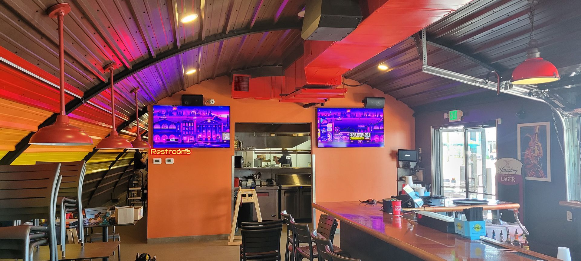 - 12 new larger (65-75” Samsung) flat-screen TVs, positioned for max visibility no matter where you sit