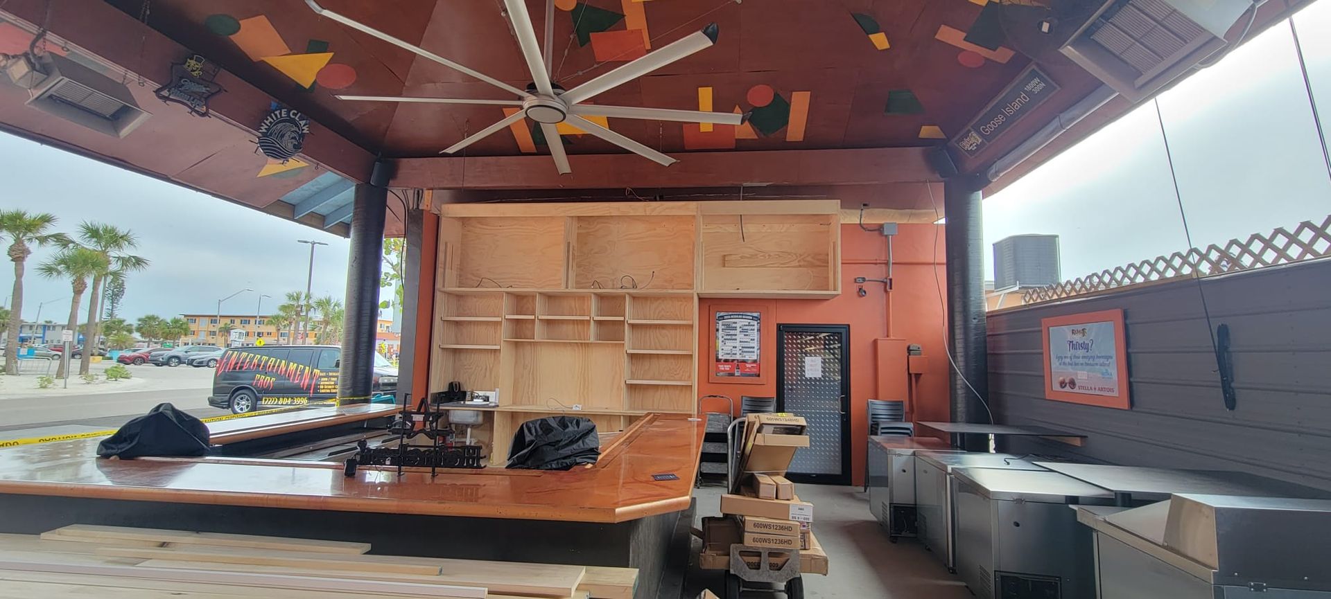 Storm surge flooded parts of Treasure Island that hadn’t seen water in decades. Ricky T’s took on water fast. Walls were damaged, equipment destroyed, speakers shorted. TVs fried. Wiring corroded. It was the kind of damage where you don’t just “fix” things. You start over.